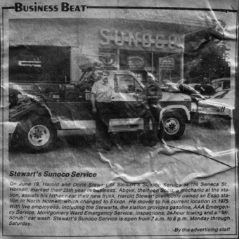 1974: We had bought the Sunoco Service Station, at are current location. 188 Seneca St. Hornell. At this time we took on 2 tow trucks and a indoor carwash. The tow trucks ran 24 hrs a day. Harold would work all day and sometimes all night, just to make sure that you got home safe.